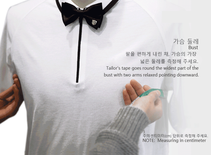 Measure around the widest part of the chest while the arms are relaxed (see photo).