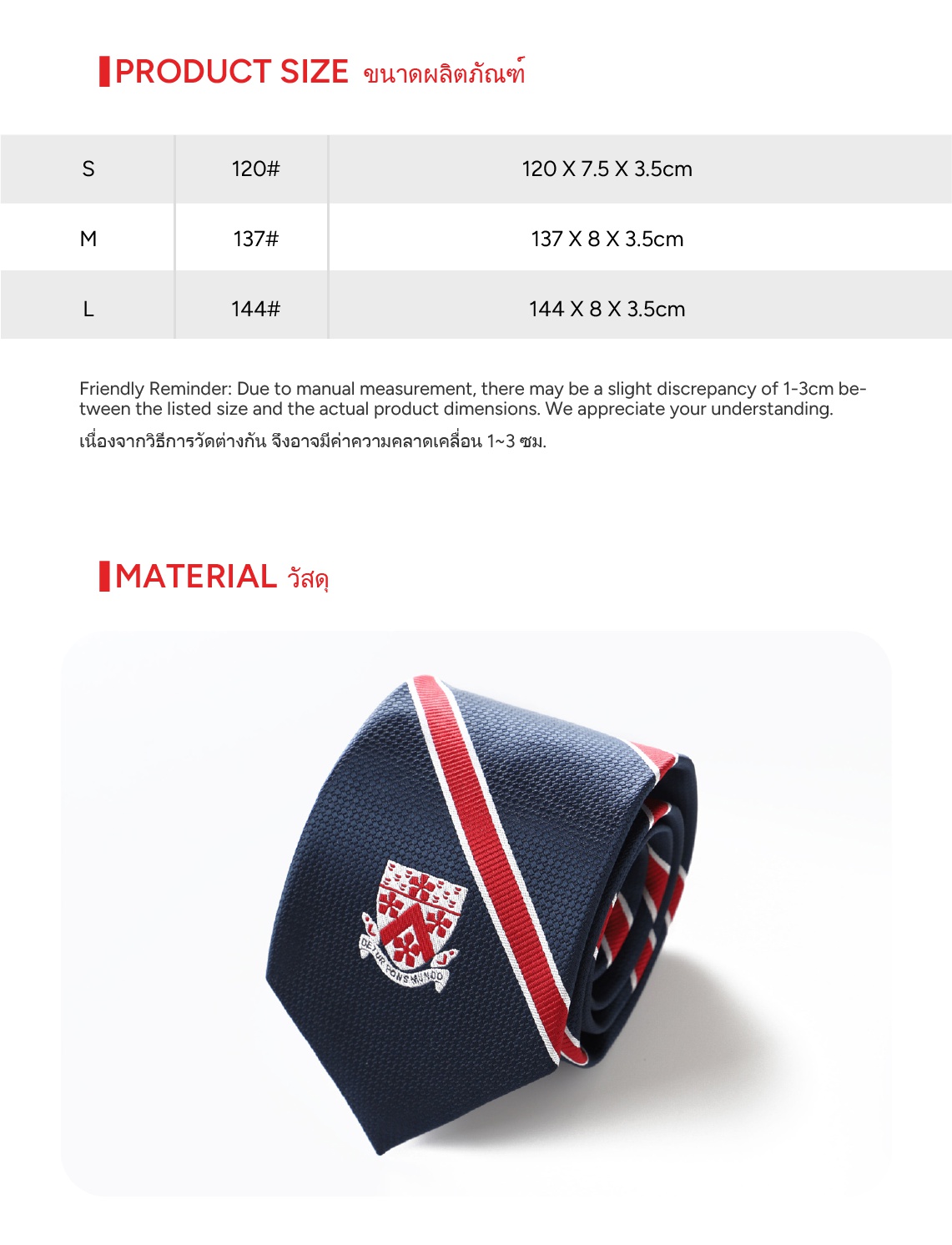 | Size | S(120cmx7.5cm) or M(137cmx8cm) or L(144cmx8cm) |